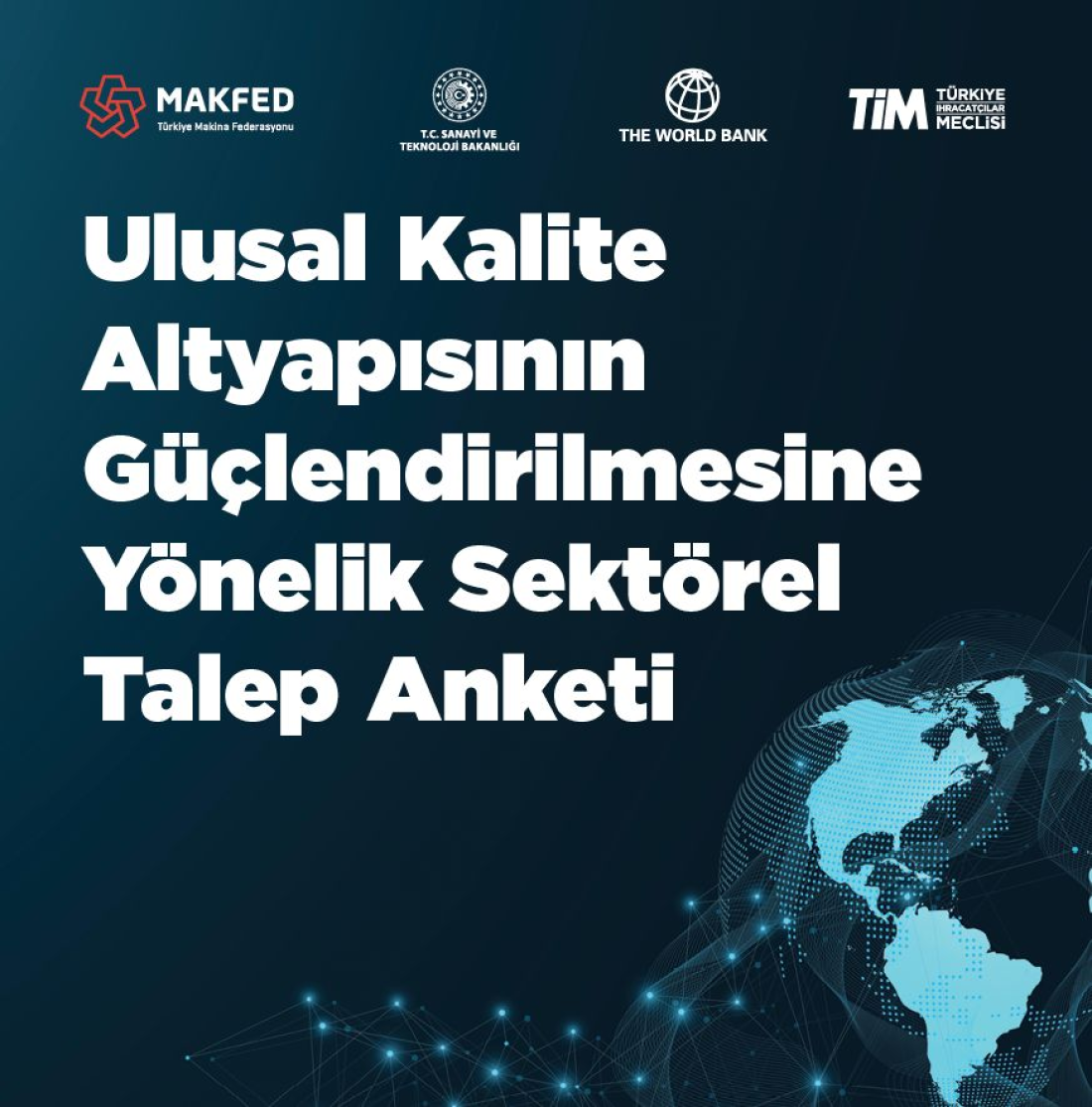 Dünya Bankası desteğiyle, Sanayi ve Teknoloji Bakanlığı tarafından yürütülmekte olan “Ulusal Kalite Altyapısı (UKA) İhtiyaç Analizi Projesi” kapsamında; Türk Standardları Enstitüsü (TSE) ve özel sektör laboratuvar yatırımlarına ilişkin önceliklerin belirlenmesi ve söz konusu yatırımların uygun finansal araçlarla desteklenmesi hedeflenmektedir. Firmalarımızın kalite kontrol, uygunluk değerlendirme ve Ar-Ge alanlarında görev yapan teknik yöneticilerimizin; yurt içinde eksikliği hissedilen test, muayene, kalibrasyon ve benzeri hizmetlere ilişkin görüşlerini paylaşmaları büyük önem taşımaktadır. Aşağıdaki anketi doldurarak katkı sağlamanızı rica eder, teşekkür ederiz. UKA Güçlendirilmesine Yönelik Sektörel Talep Anketi: https://forms.gle/ko18kSfMxPQzUb26A